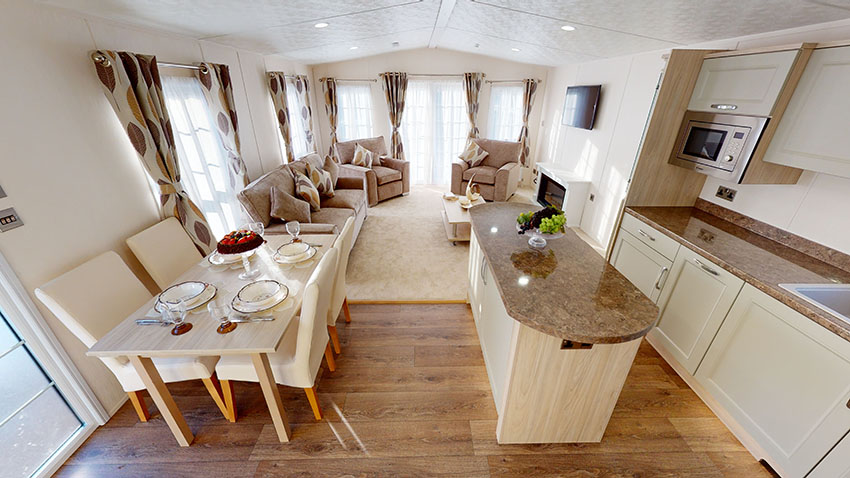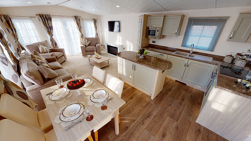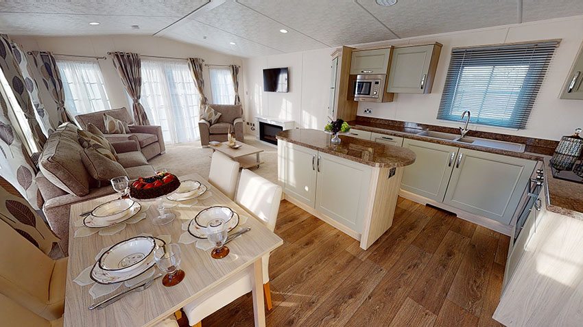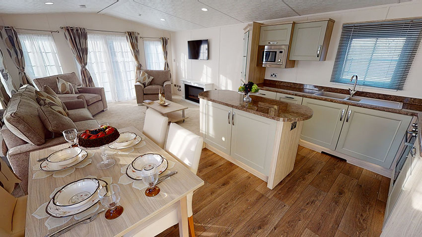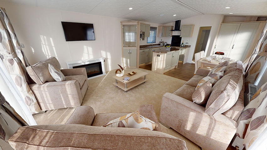 It features patio doors to the front giving you direct access to your own deck. The living room is wonderfully inviting, with optional luxury furnishing.